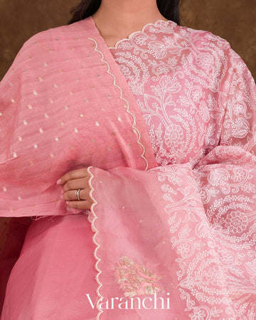 Baby Pink Embroidered Pure Kora Silk Saree