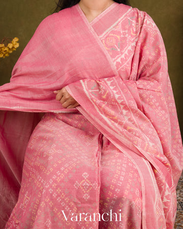 Dusty Rose Pink Pure Rajkot Patola Cotton Handloom Saree
