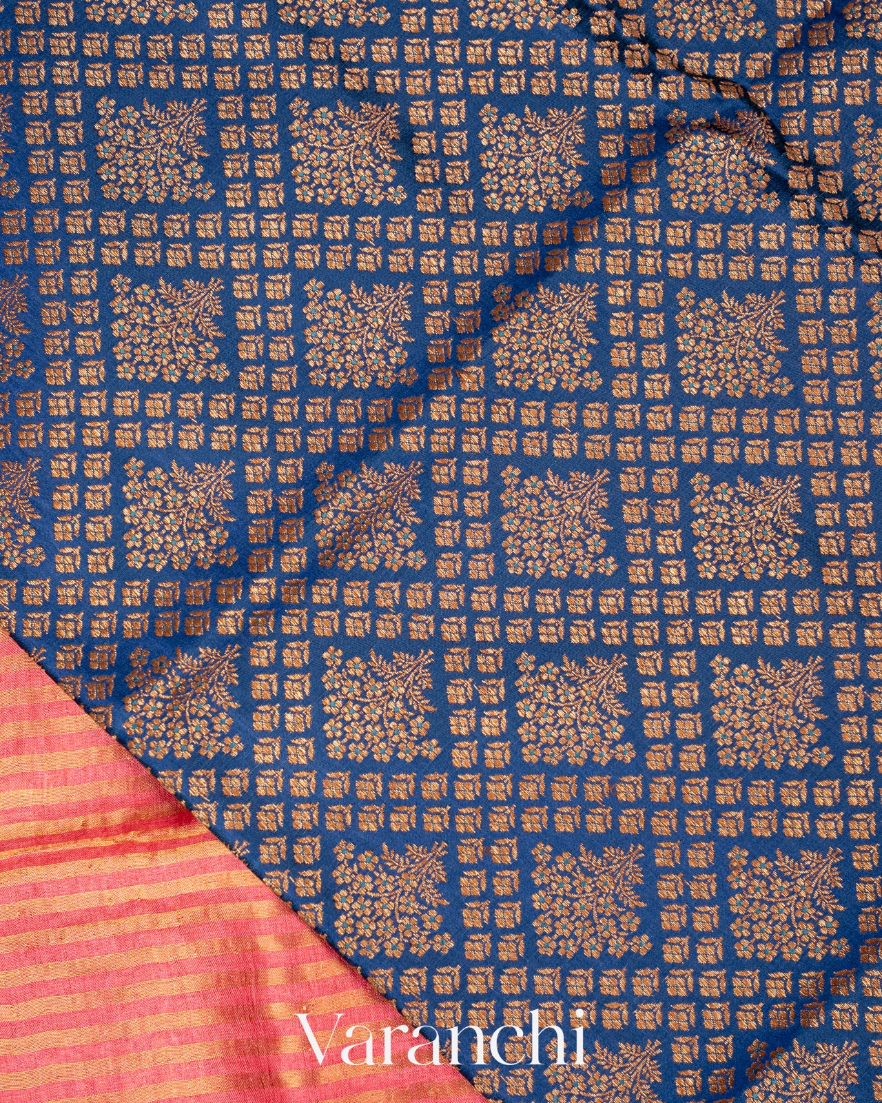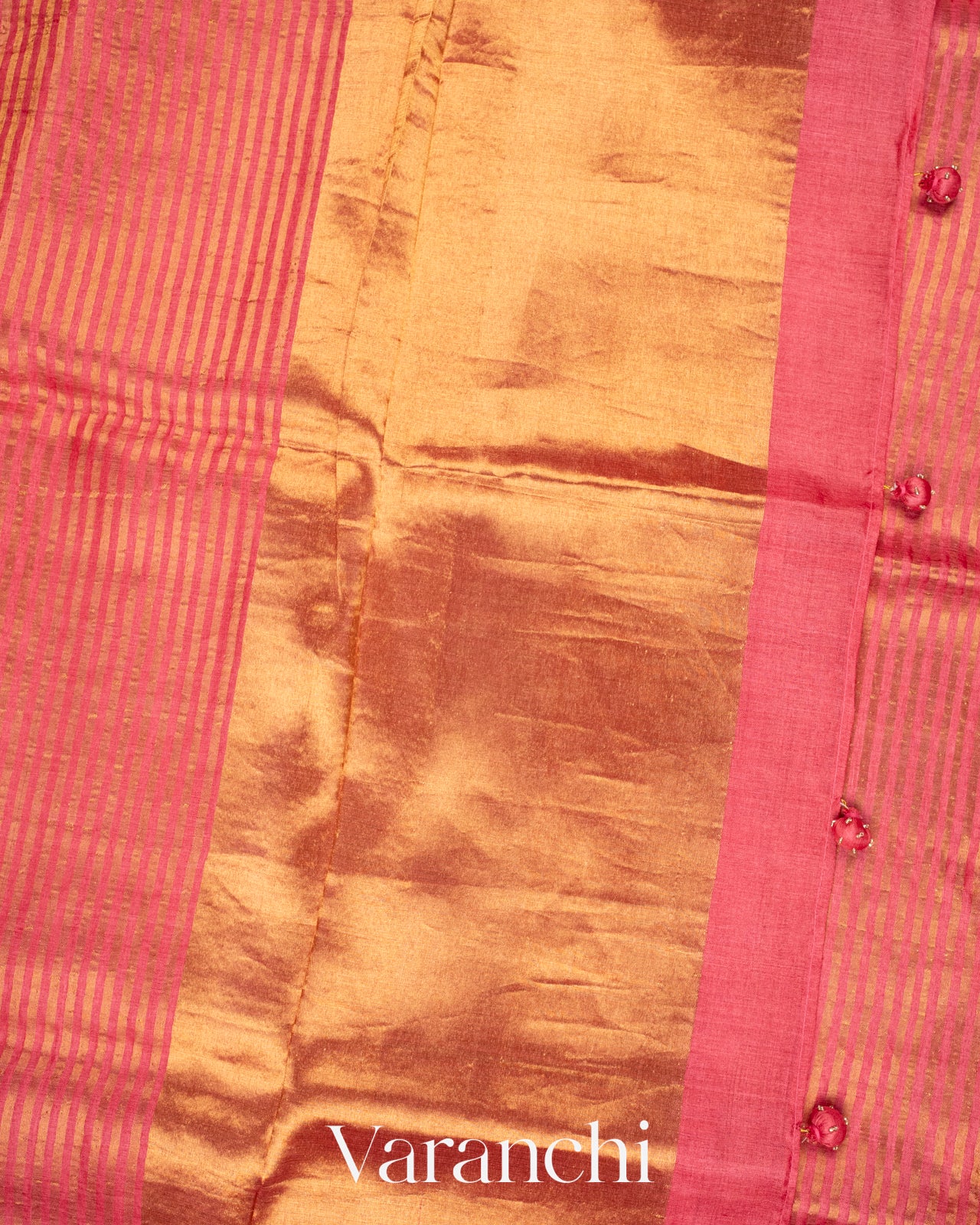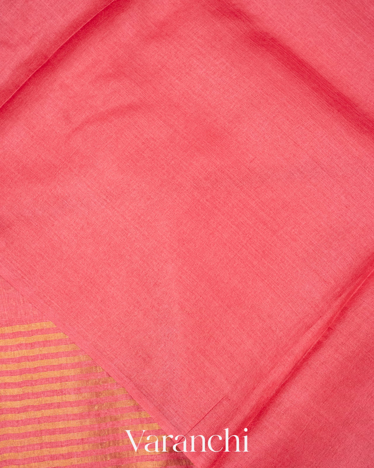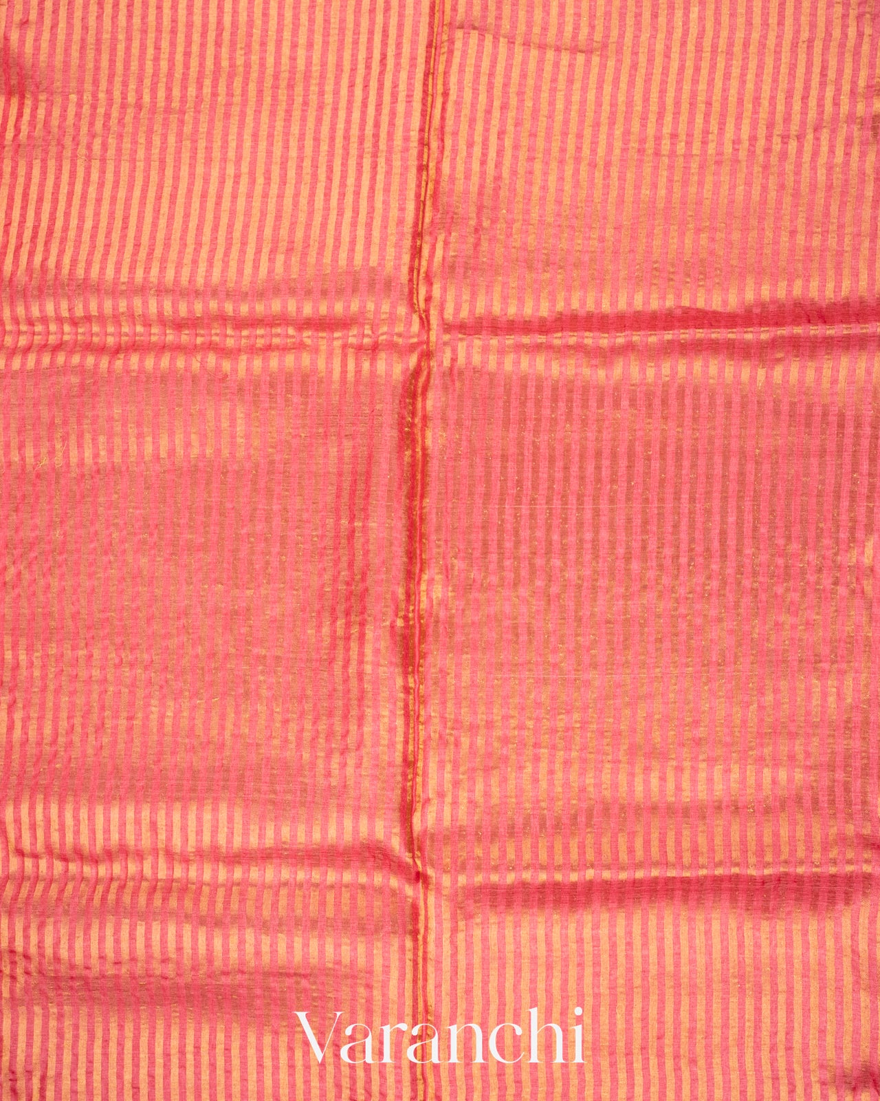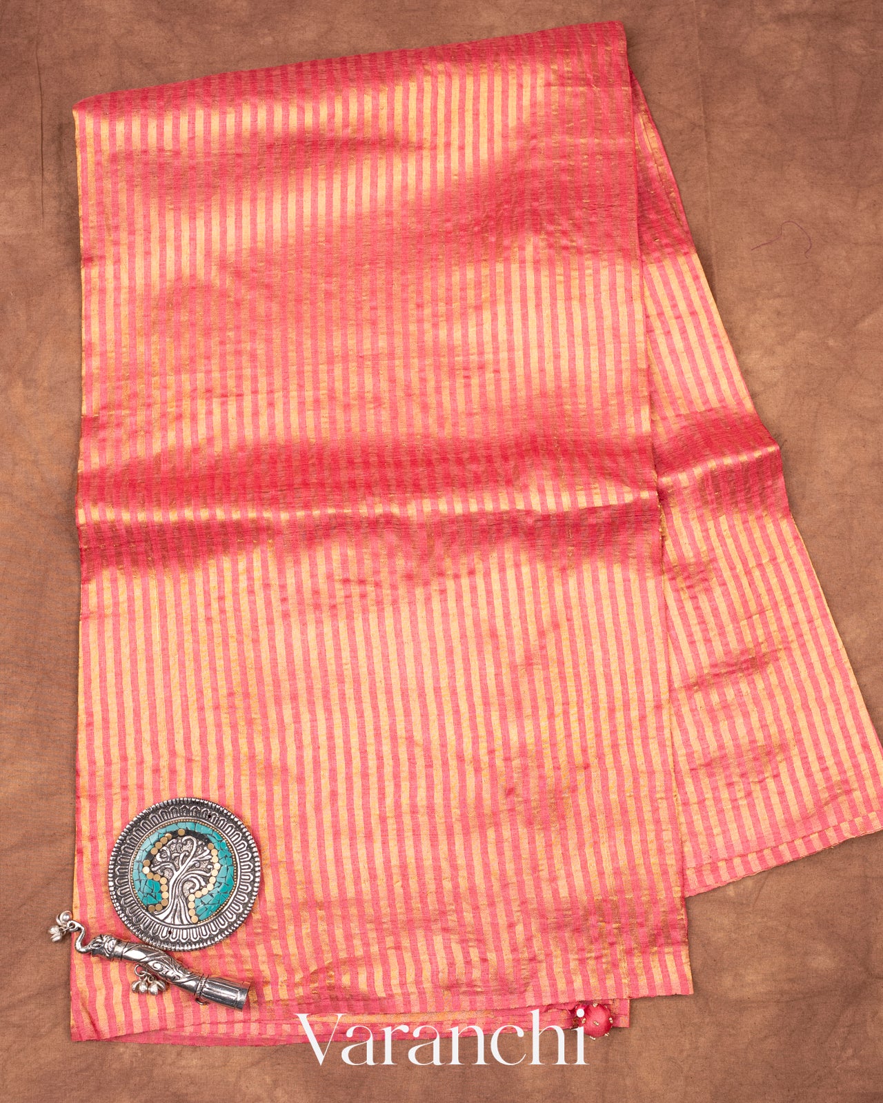Rose Pink Pure Tussar Silk with Tissue Stripes Handloom Saree