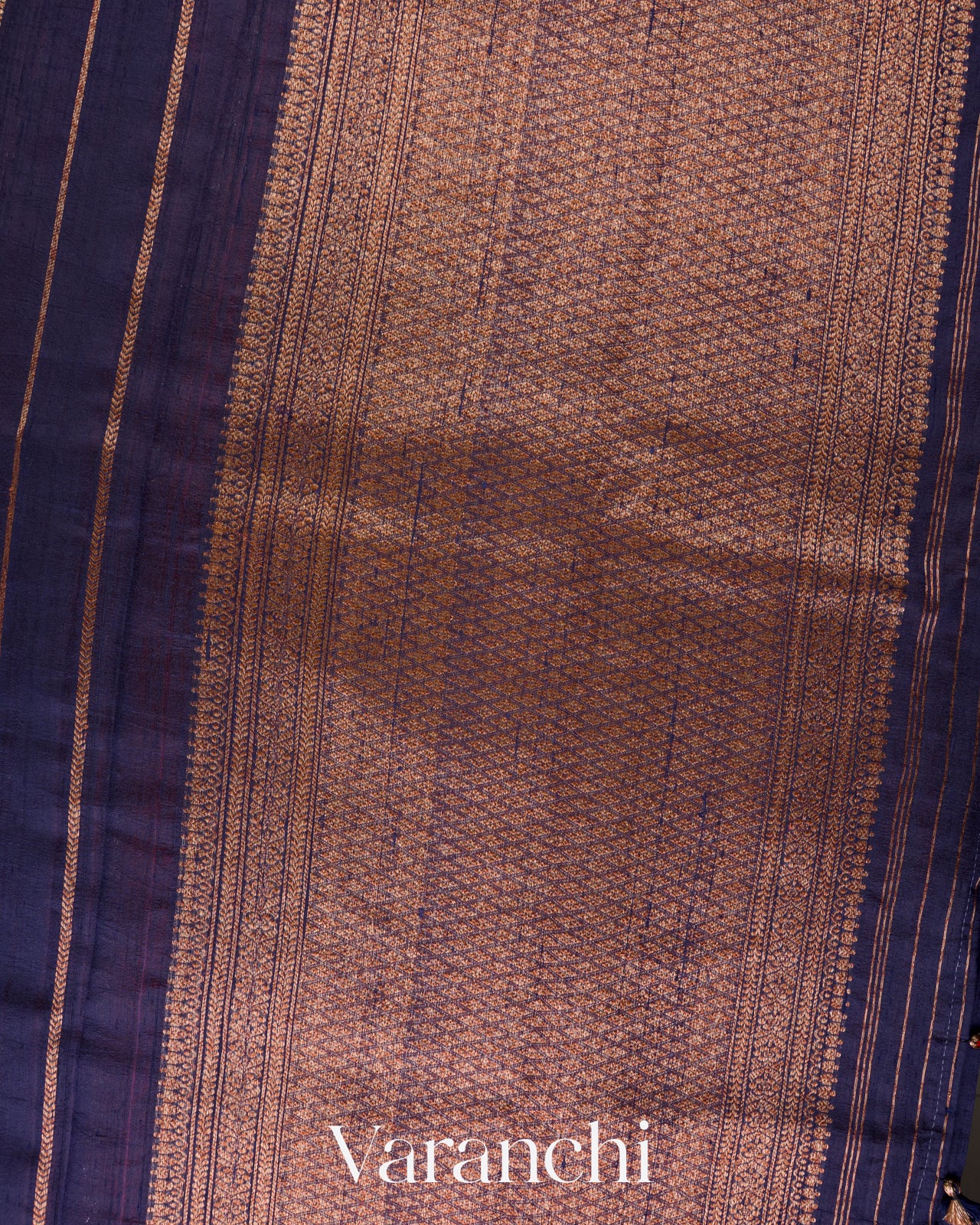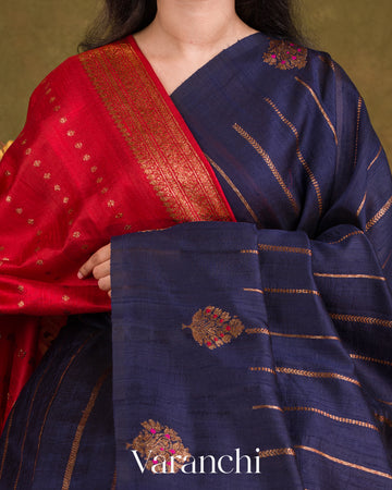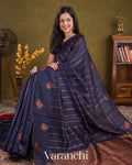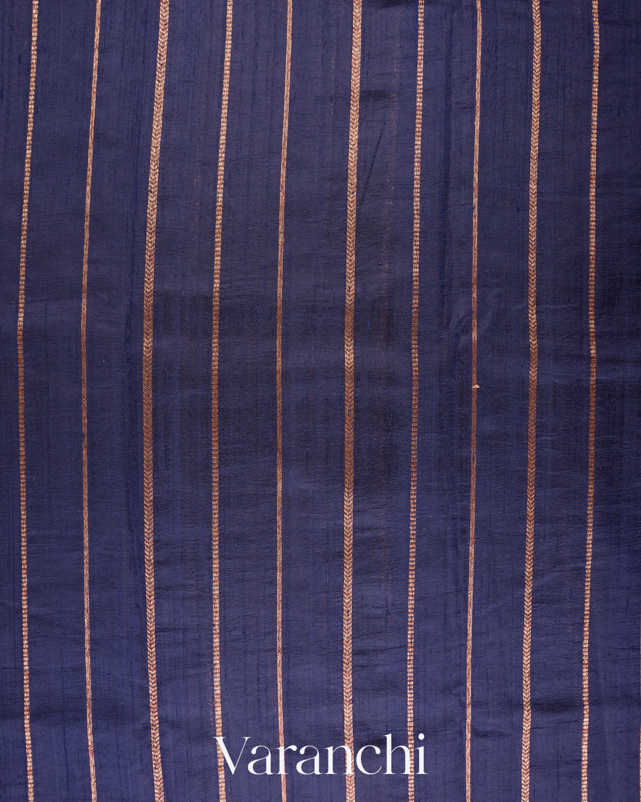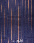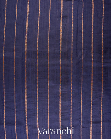 Royal Indigo Borderless Striped Pure Raw Silk Handloom Saree