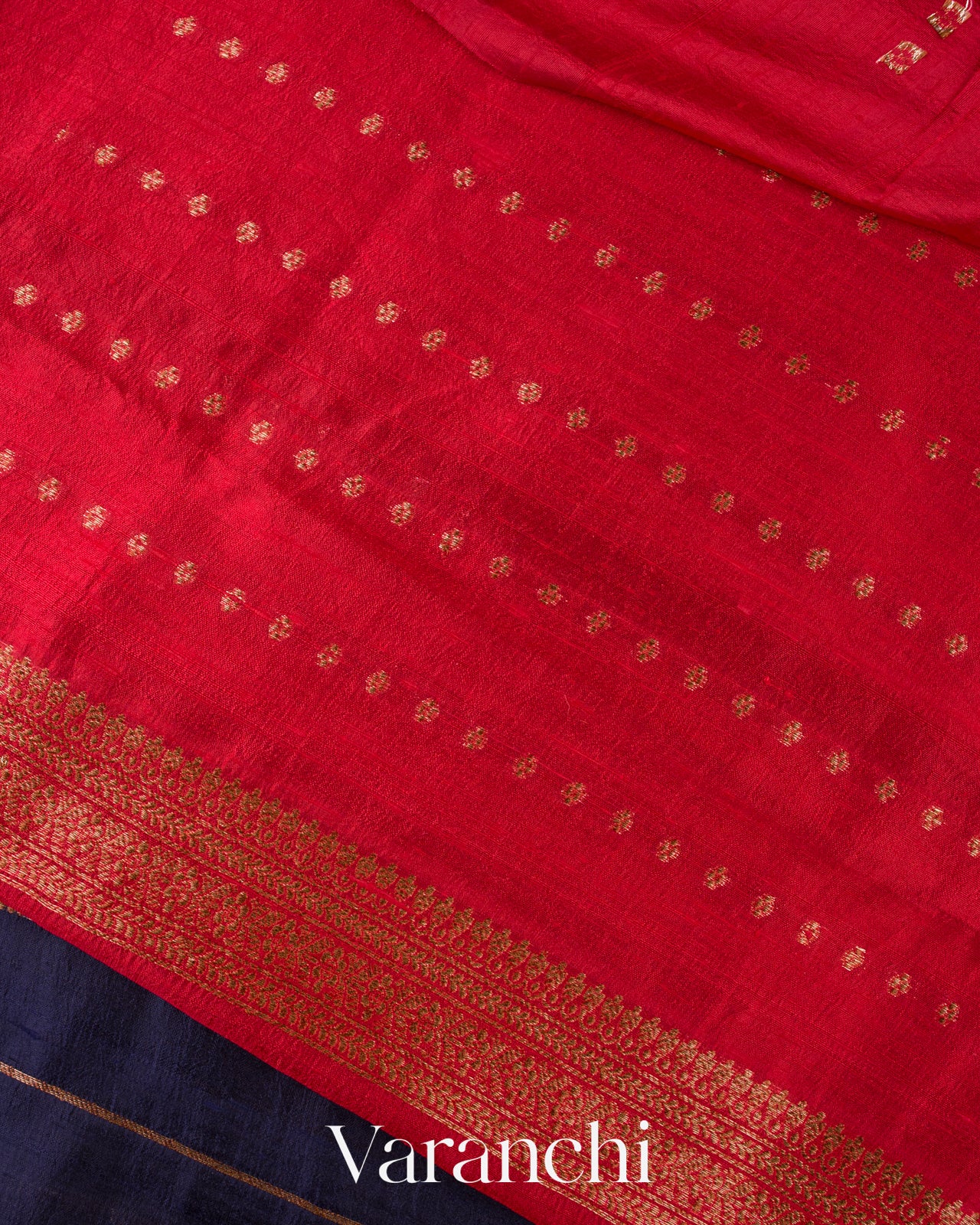 Blouse Piece Included In Sindoor Red Colour With Antique Zari Stripes (1 mt. approx) |