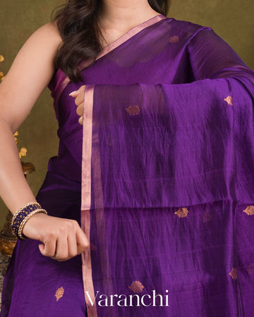 Royal Purple Jamdani Pure Mulberry Silk Handloom Saree