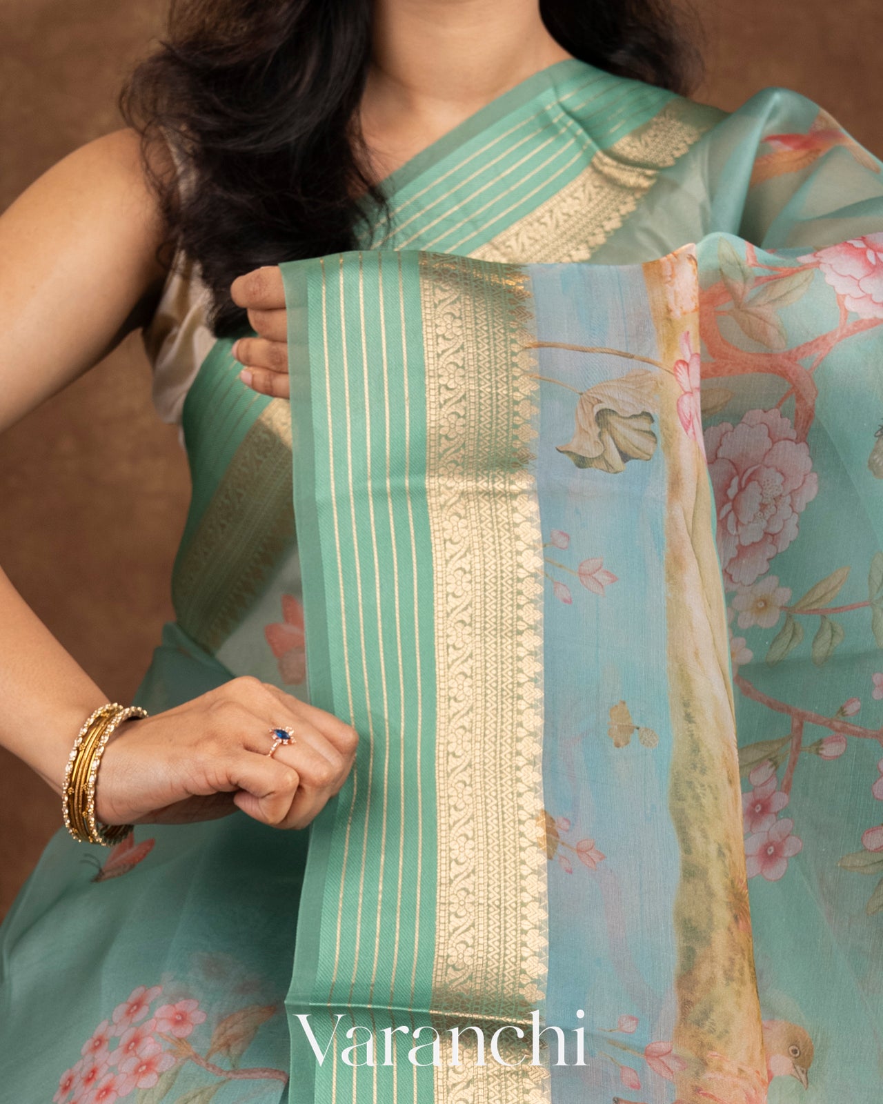 Blouse Piece Included in Self-Colour with katan borders (1 mt. approx) |