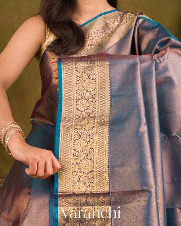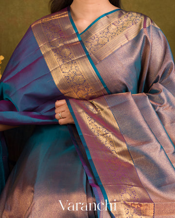 Midnight Blue Vaira Oosi Pure Kanchipuram Silk Handloom Saree