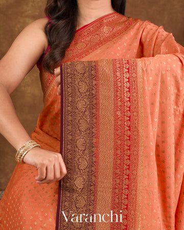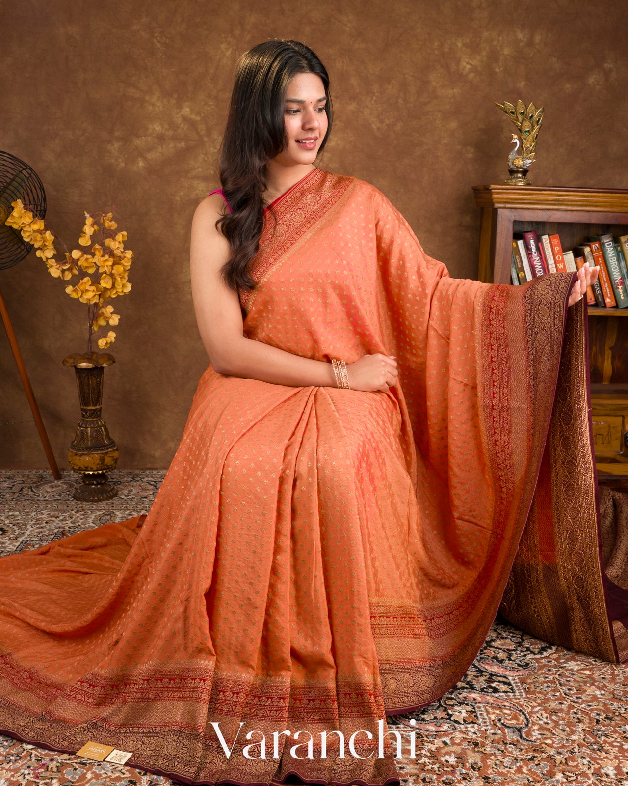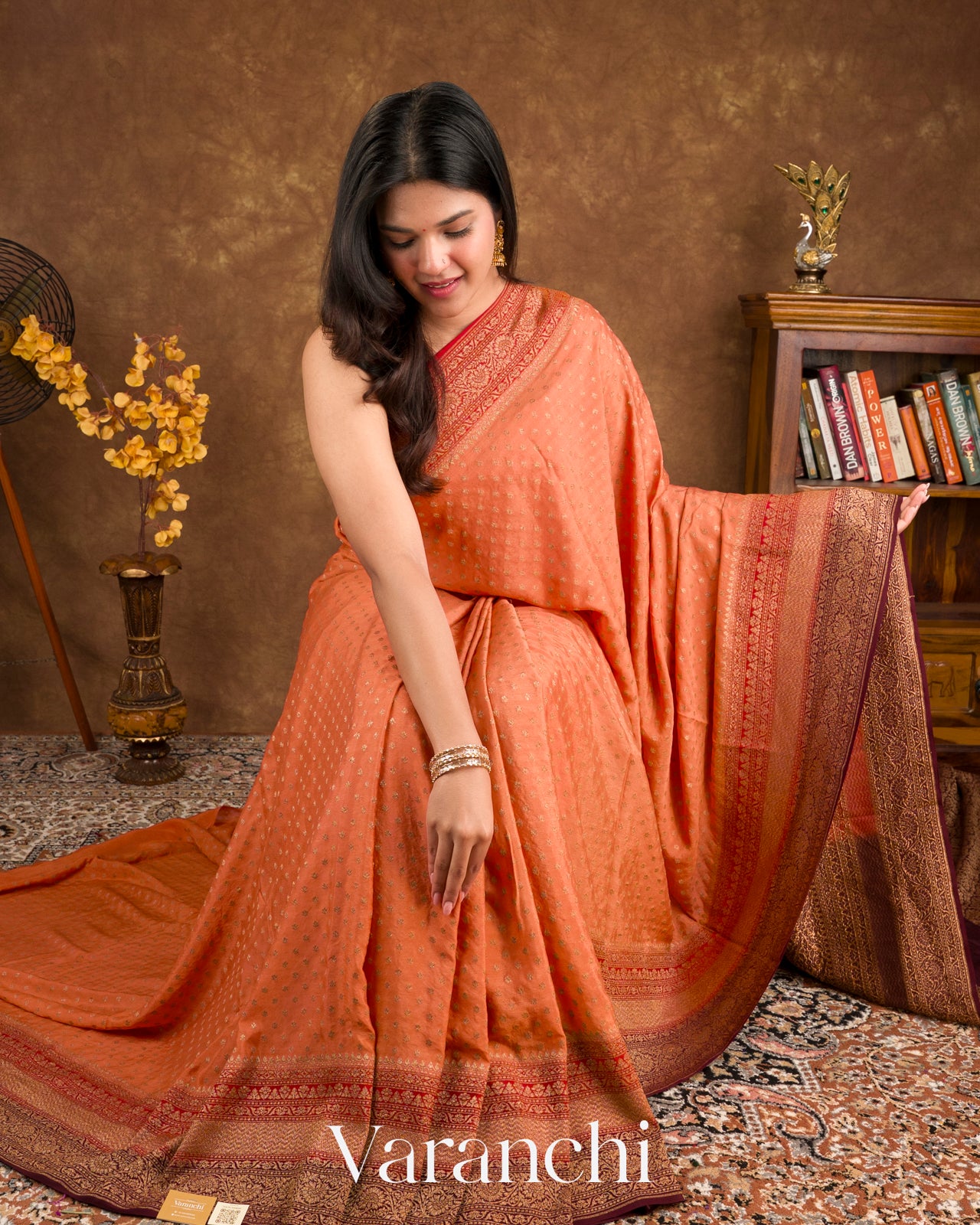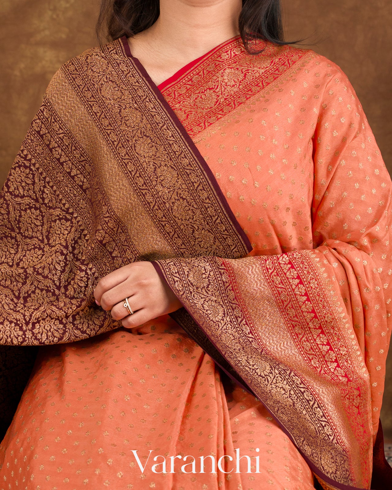 Blouse Piece Included In Coffee Maroon Colour With Brocade Pattern (1 mt. approx) |