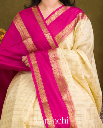 Soft Ivory Checkered Pure Mysore Crepe Silk Saree