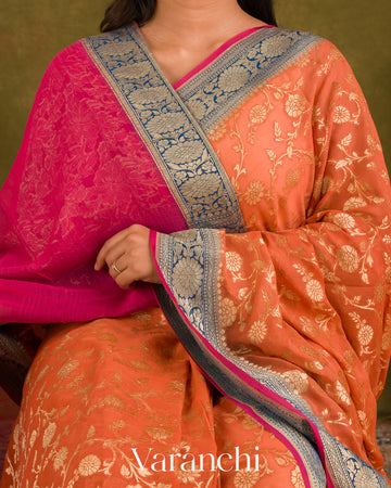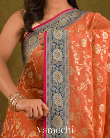 Sunset Orange Pure Khaddi Georgette Silk Saree