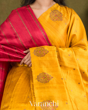 Turmeric Yellow Borderless Pure Raw Silk Handloom Saree