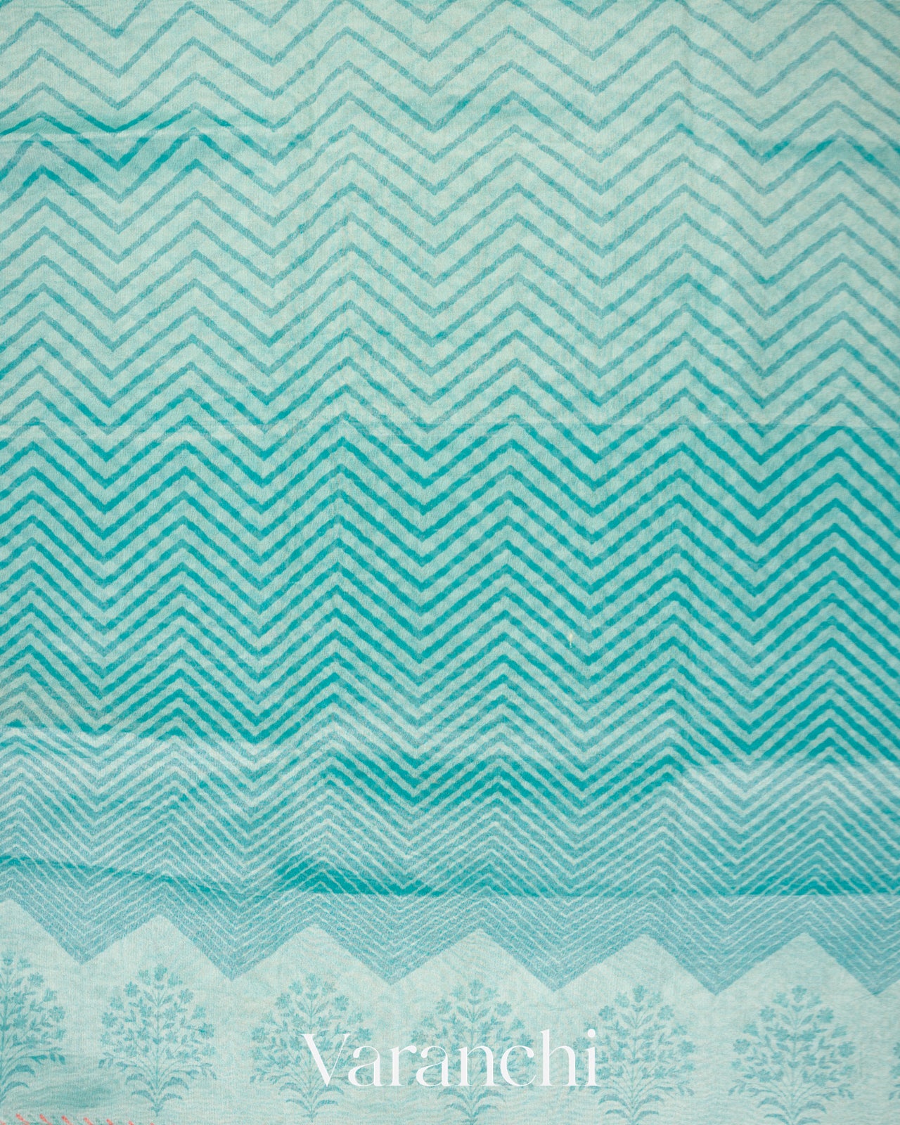Turquoise Blue Digital Printed Pure Silk Cotton Tissue Saree