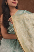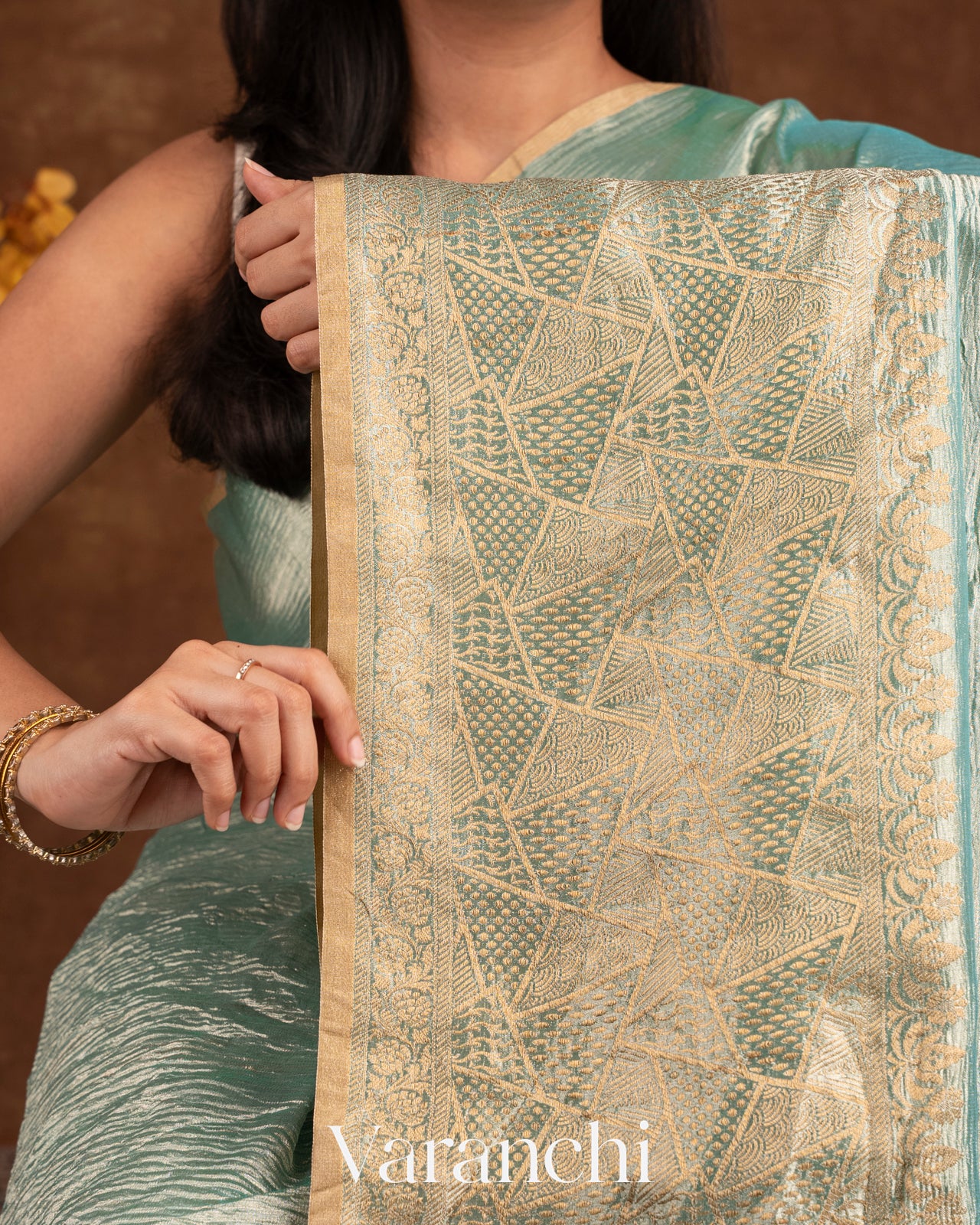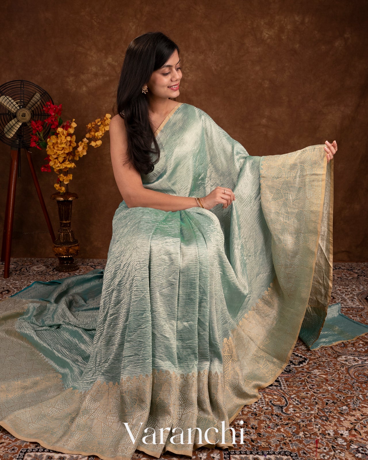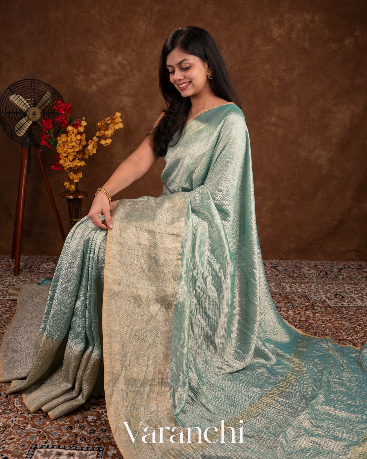 Turquoise Blue Pure Crush Tissue Silk Saree