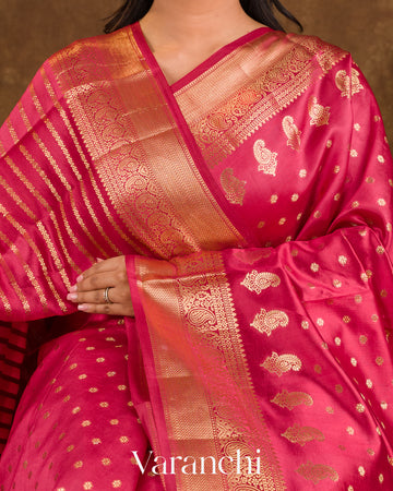 Reddish Pink Pure Dupion Silk Handloom Saree