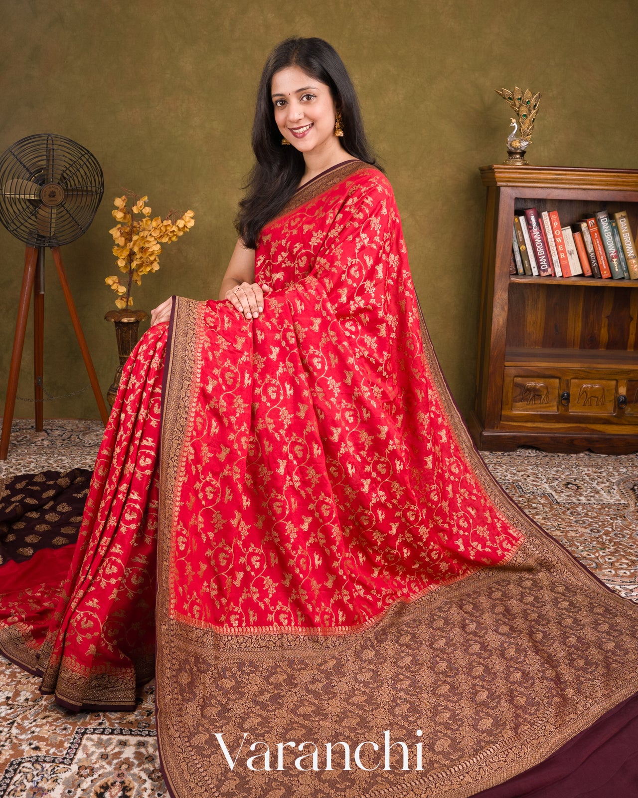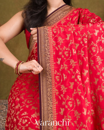 Vermilion Red Pure Crepe Silk Handloom Saree