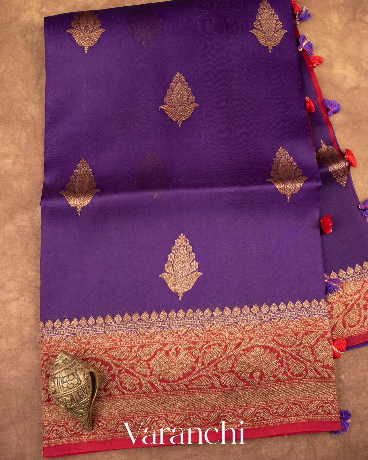 Violet Pure Kora Silk Handloom Saree