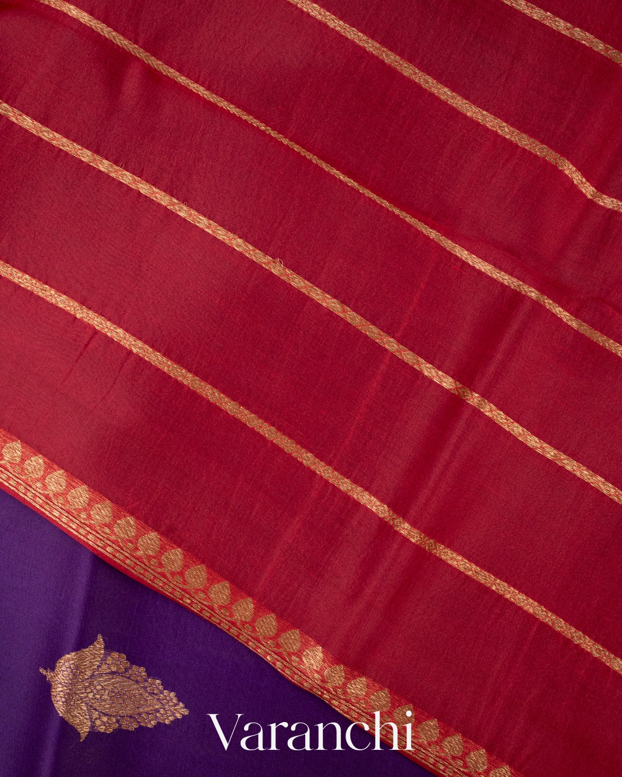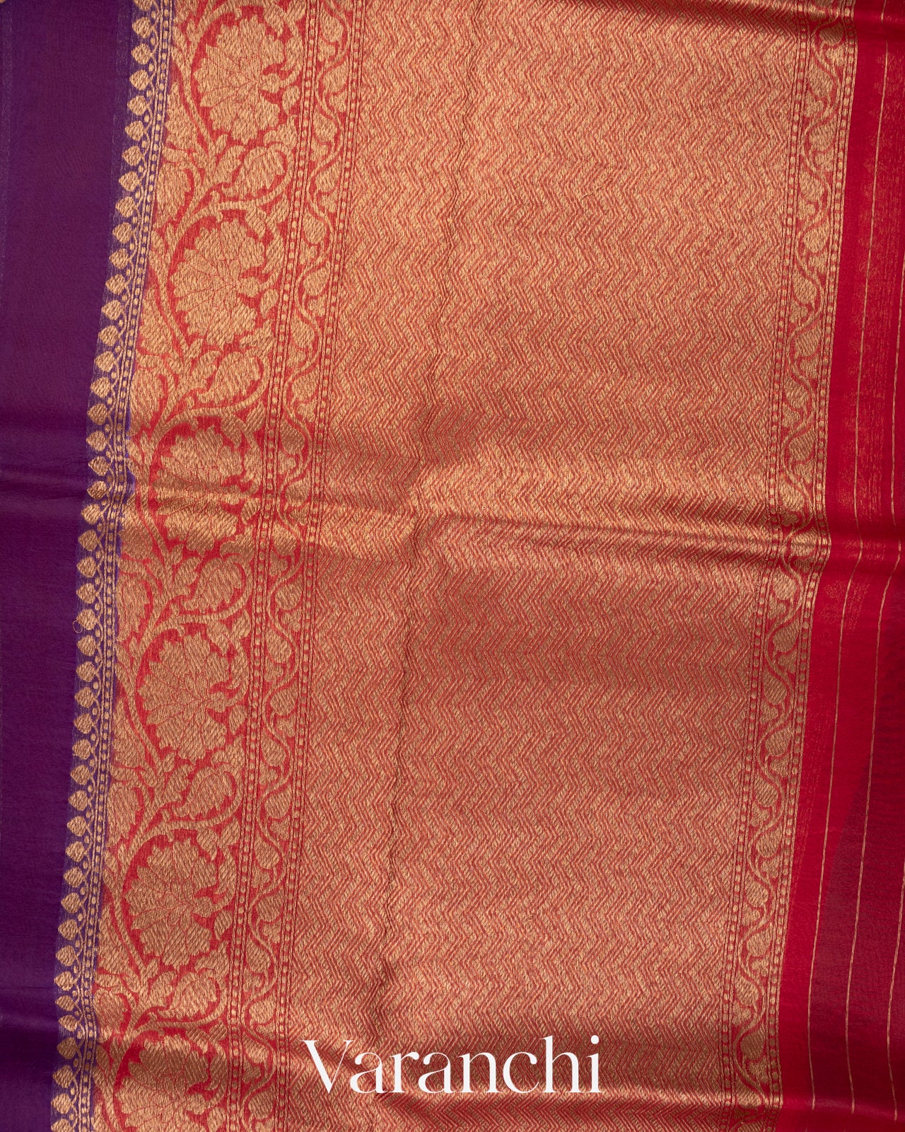 Blouse Piece Included in Bright Red Colour with Antique Zari Stripes (1 mt. approx) |