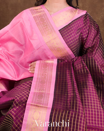 Deep Magenta Checks Pure Kanchipuram Silk Cotton Handloom Saree