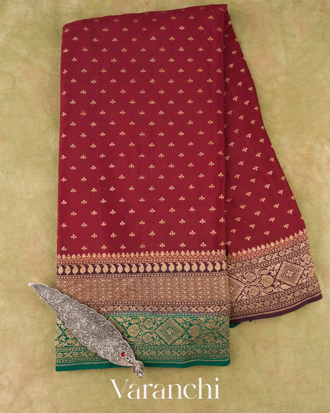 Wine Maroon Pure Crepe Silk Handloom Saree