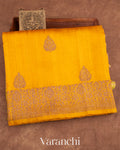 Blouse Piece Included in Bright Turmeric Yellow Colour with Antique Zari Stripes (1 mt. approx) |